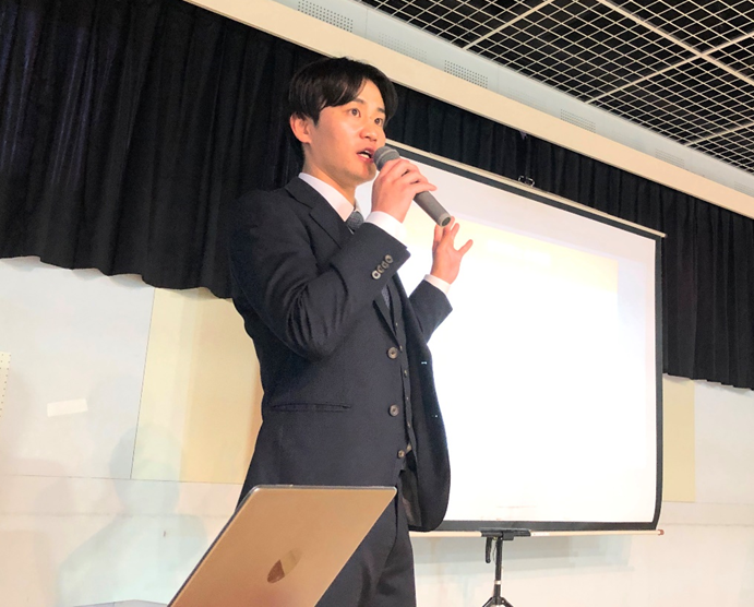 勉強会では2つの講演が行われました。最初は株式会社フクシアの石田雄大氏が登壇しました。石田氏は近年、保育現場で相談が増えている発達特性や行動面の課題について保育と療育がどのように協力し合えるかを豊富な実例を交えながら解説しました。